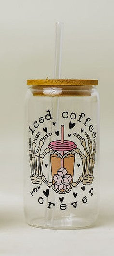 Iced coffee forever skeleton glass cup